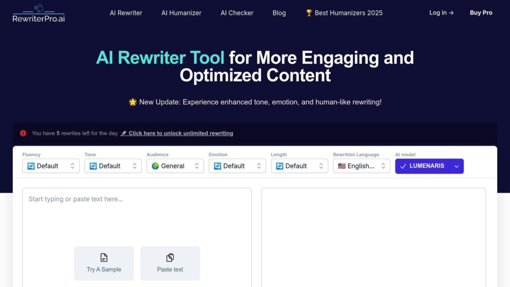 Rewriter Pro is a helpful AI tool that improves writing for both students and teachers. It rewrites essays, notes, and reports in clear, simple language while keeping the original meaning. The tool helps fix awkward sentences and makes writing sound more natural. It’s perfect for anyone who wants to save time and make their work more polished.